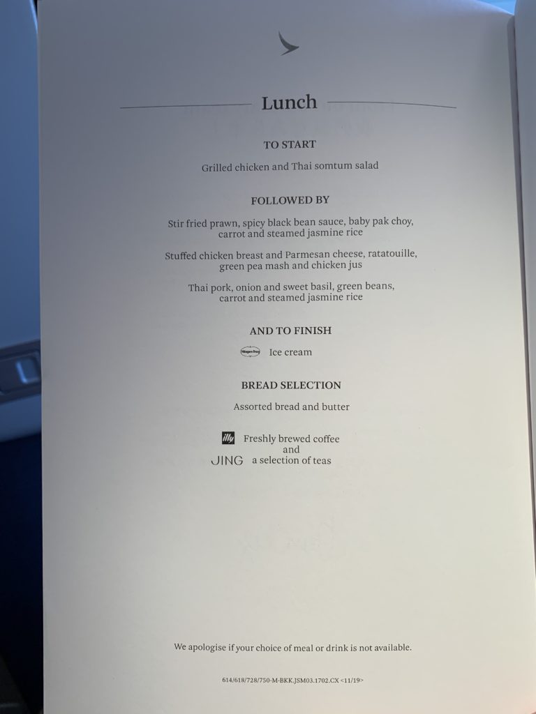 Nothing to say here – flight went quickly, snack basket and a good crew, and kept feeling better and better as the flight went on. The epilogue to the story is: stop acting like you’re 21. Eat some salads. Drink a whole lot less craft beer and wine. Hamburgers are not one of the major food groups, oh, and stop flying 250,000 miles and year and stressing yourself out prepping for meeting after meeting. 2020 is going to bring some big changes!