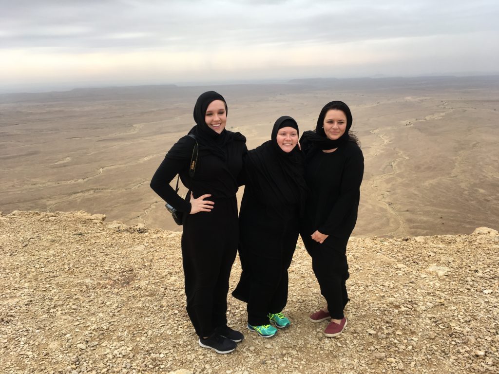 Three of the ladies on the trip, Ania, Katelyn, and Jenna, rocking their abayas. More than 500 countries visited between them