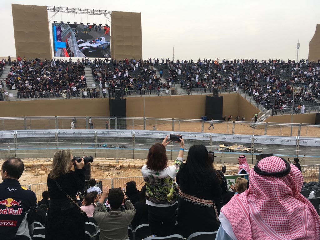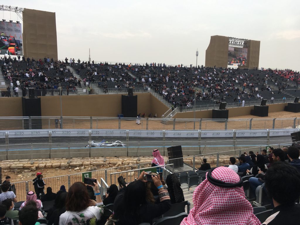 The race….was a disorganized mess, but we eventually made it to the bleachers to watch for about an hour. I can’t say I’m in a great hurry to go to another Formula E race, but it was cool to see an event like this happening in Saudi Arabia.