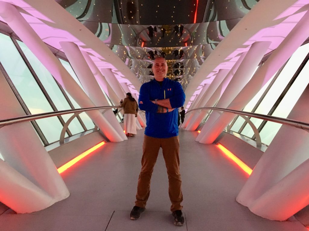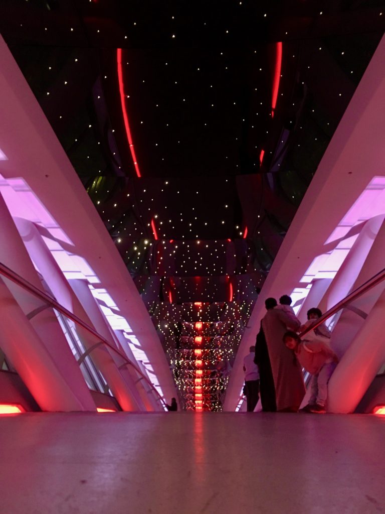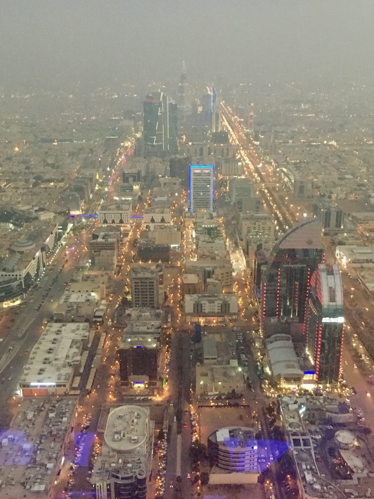 After we’d had enough racing action we headed to the Kingdom Tower, otherwise known as the giant taser. You can see why the way it’s lit up at night: (not my photo – not sure who in the group took it though) It changes colour every few seconds, which gives a pretty neat effect:
