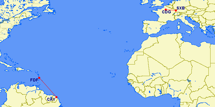 I had to come back and edit this post, because I totally forgot about another flight…Cayenne, French Guyana to Fort-de-France, Martinique! Two domestic flights in the same country, nearly 4,000 miles apart!