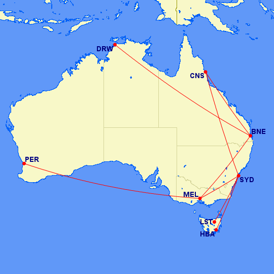 Second new country in 2005 with a domestic flight was Australia. That trip, I only went down to Tasmania, but since then I’ve gone back and done Melbourne, Perth, Brisbane, Cairns, Darwin. Definitely one of my favourite countries, and Qantas has been a great airline. If US airlines could be half the quality Qantas is on domestic flights I would be thrilled! Definitely the country with my most “full” domestic map of flights after the US too.