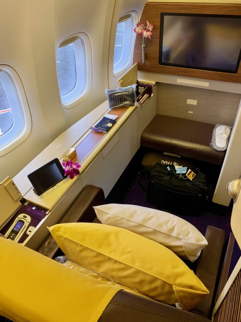 When I booked, only economy was available on this flight for an award, but the great agent did waitlist me for first. Oddly, 24 hours before the flight, there were still five seats unsold but still no upgrade for me….it dwindled to four, then three, then two…and held at one…and finally cleared for me at the gate. That was a close call.