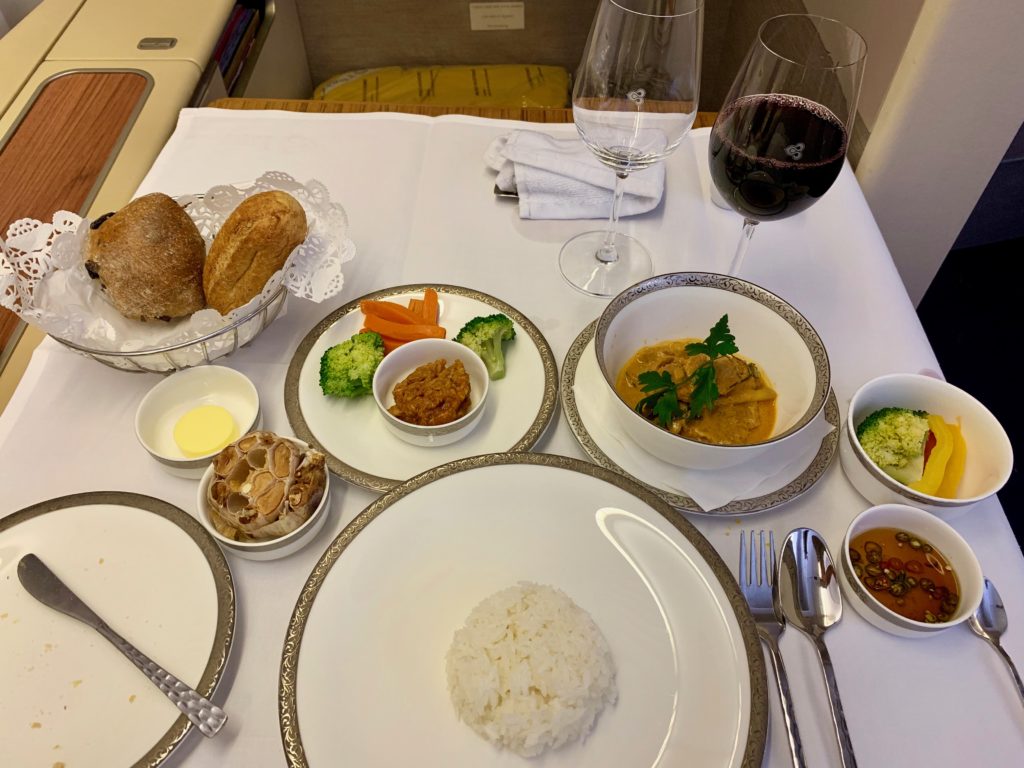 Pre-landing breakfast was served, with the usual offer of congee, “smoked salmon and spinach frittata” (aka cholesterol and sodium bomb) or “fruit with cereal and milk.”