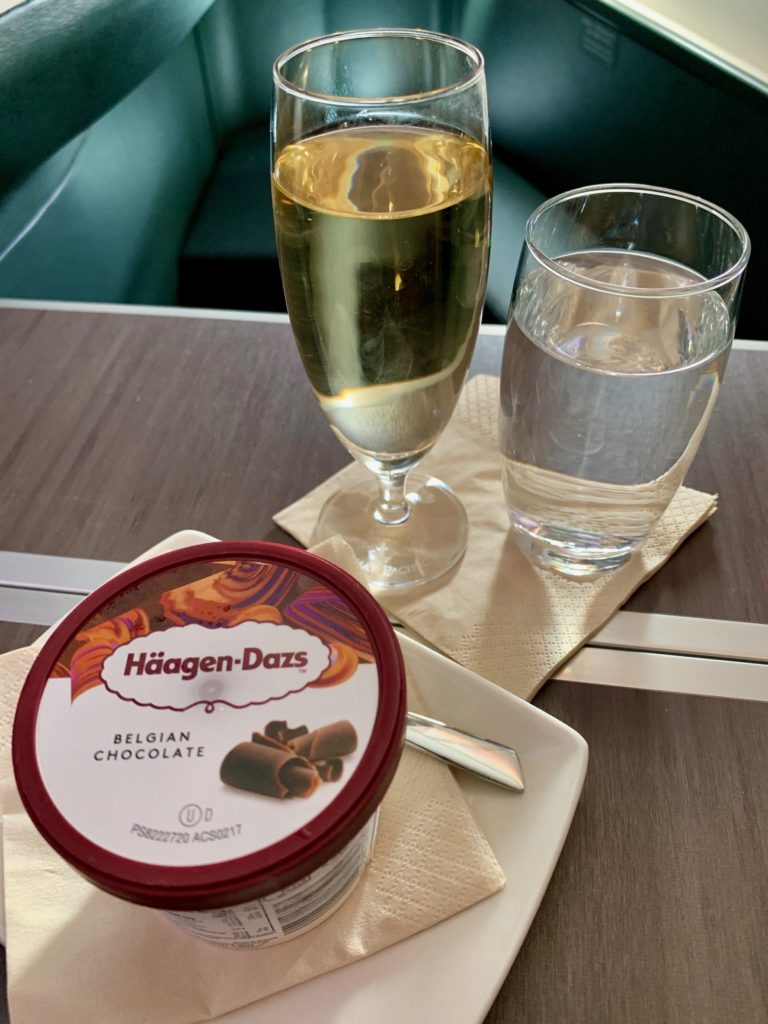 Cheese and deserts finished off the exactly-as-expected United meal. I would say the cheese was just average today (I never really find interesting or adventurous cheese on United) but the bonus cherries on the sundae were definitely a win!