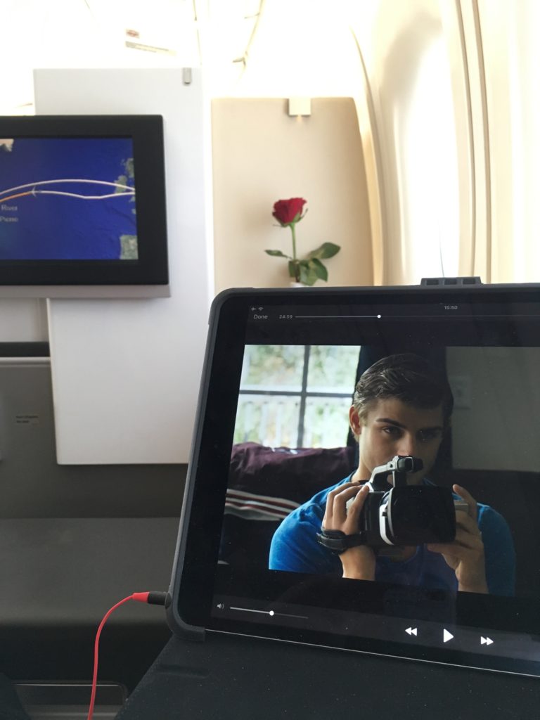 While I love using the Great Circle Mapper website to plot my routes, it’s even more fun when they’re displayed on the bulkhead…complete with both segments!
