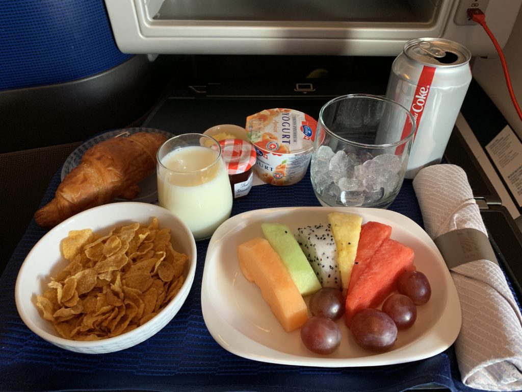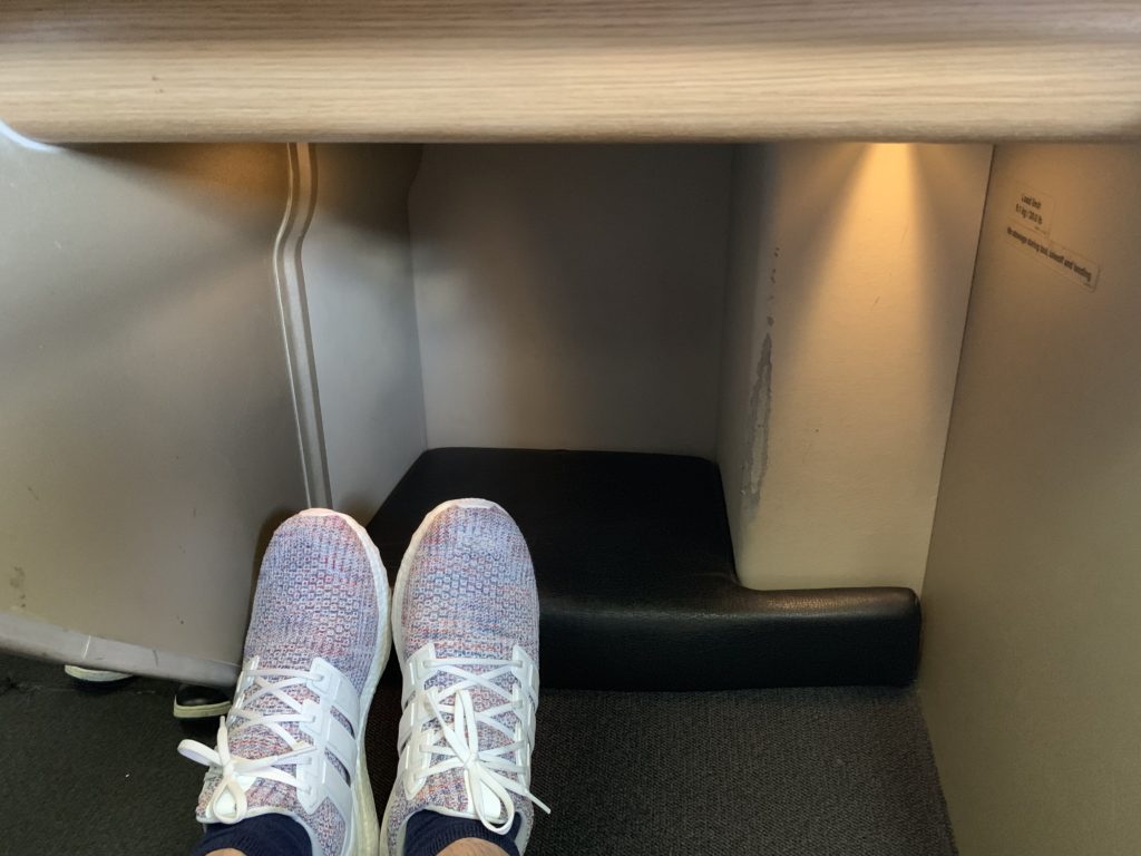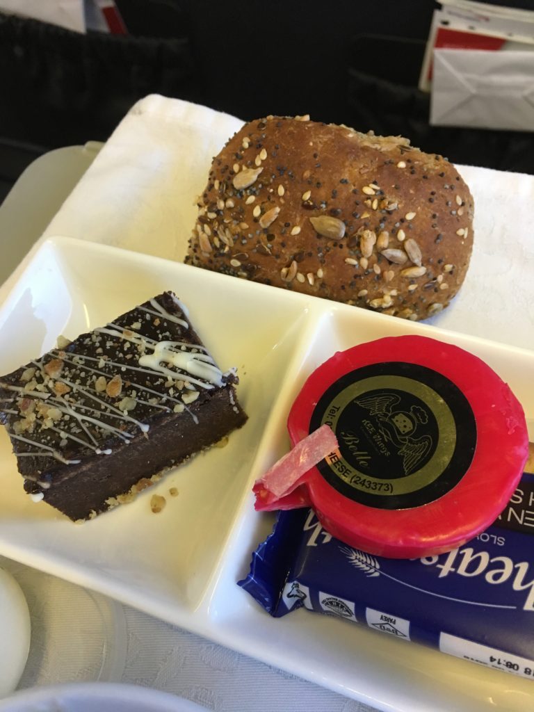 I had managed to finagle my way into an aisle seat in the second row at check-in (no business on this ancient bird!) and despite the load being about 75% today the middle seat stayed empty. Plus, I had an amazing view of the delightful old-school moving map on the bulkhead!