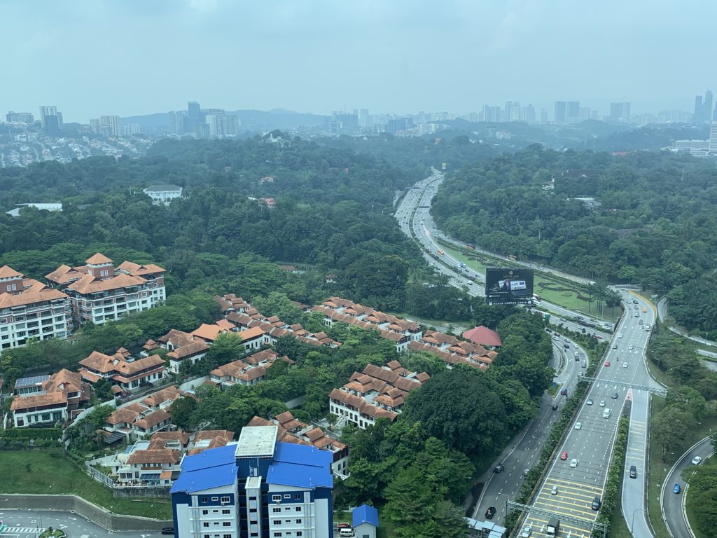 I decided to “push” things a little and take the 10am shuttle to the airport, having seen the night before that the airport looked tiny. As we left the hotel (on the left in the picture below) the sun was just starting to rise a bit after 10am.