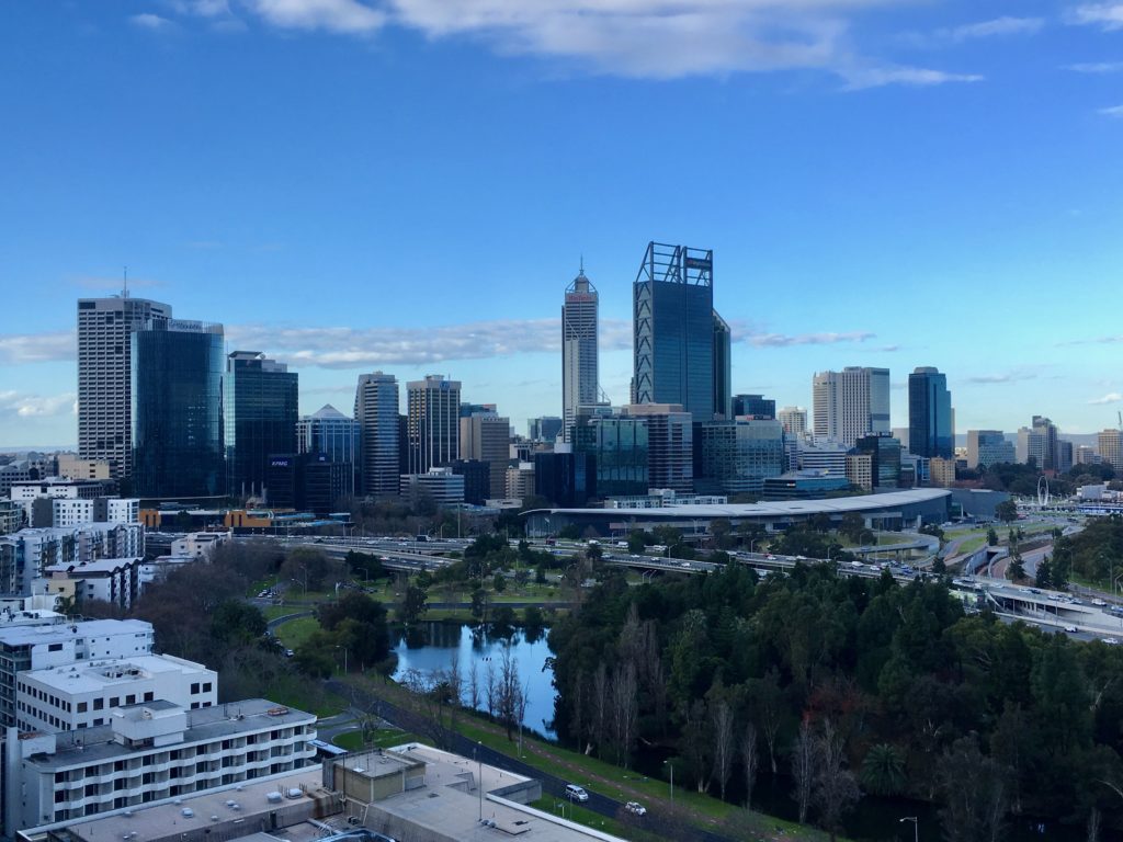I decided to “push” things a little and take the 10am shuttle to the airport, having seen the night before that the airport looked tiny. As we left the hotel (on the left in the picture below) the sun was just starting to rise a bit after 10am.